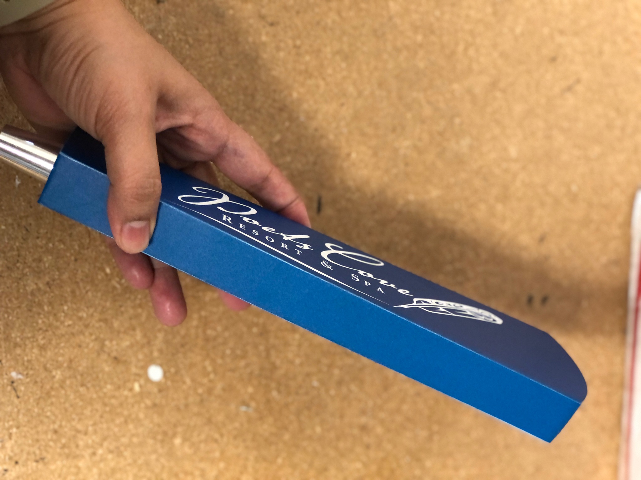 Can I get a chalkboard tap handle? Yes. We use a synthetic chalkboard vinyl that lasts longer and is easier to clean. If you want this, mark it on your proof as “Chalkboard area”. (extra fees)