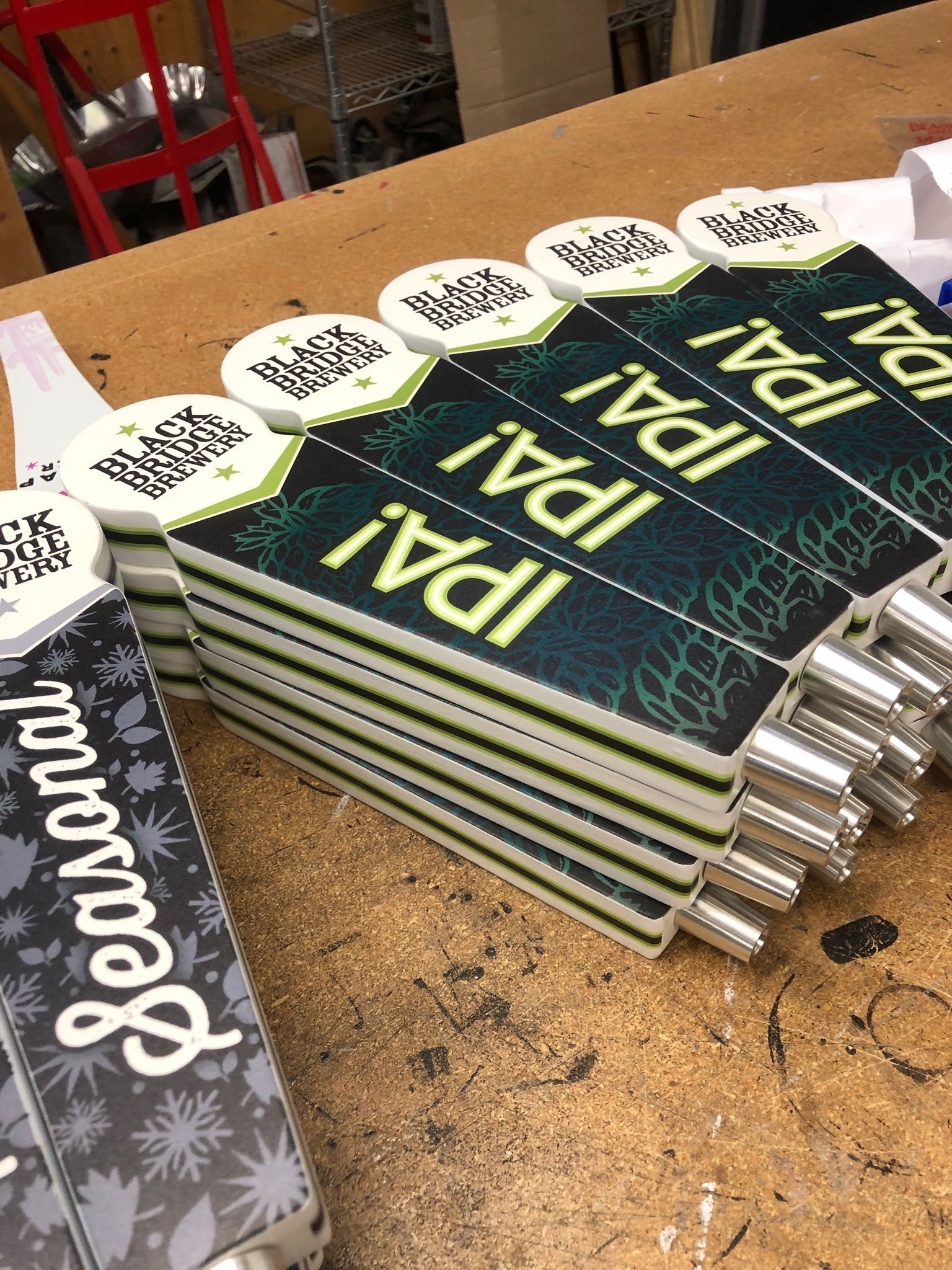 Can I get a chalkboard tap handle? Yes. We use a synthetic chalkboard vinyl that lasts longer and is easier to clean. If you want this, mark it on your proof as “Chalkboard area”. (extra fees)