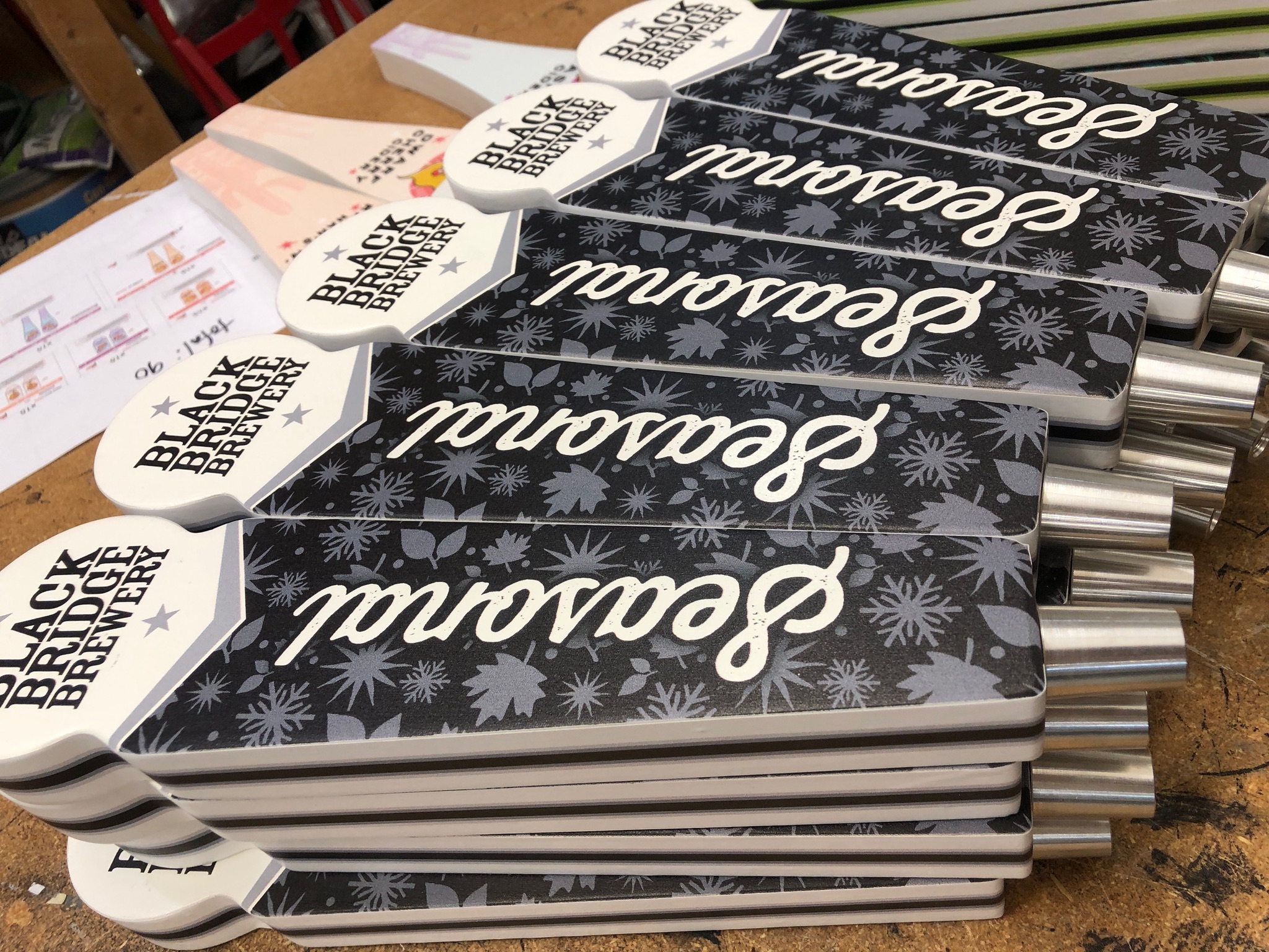 Need multiple titles? You can order as many layouts as you like as long as you are providing the artwork on our tap handle template (below) For example, if you order 50 handles and need 5 different layouts of 10 handles each you can do that and still get the bulk discount. All you would do is put your files into a zip folder and submit that with your order. Then let us know in the Special Instructions area the quantities of each.