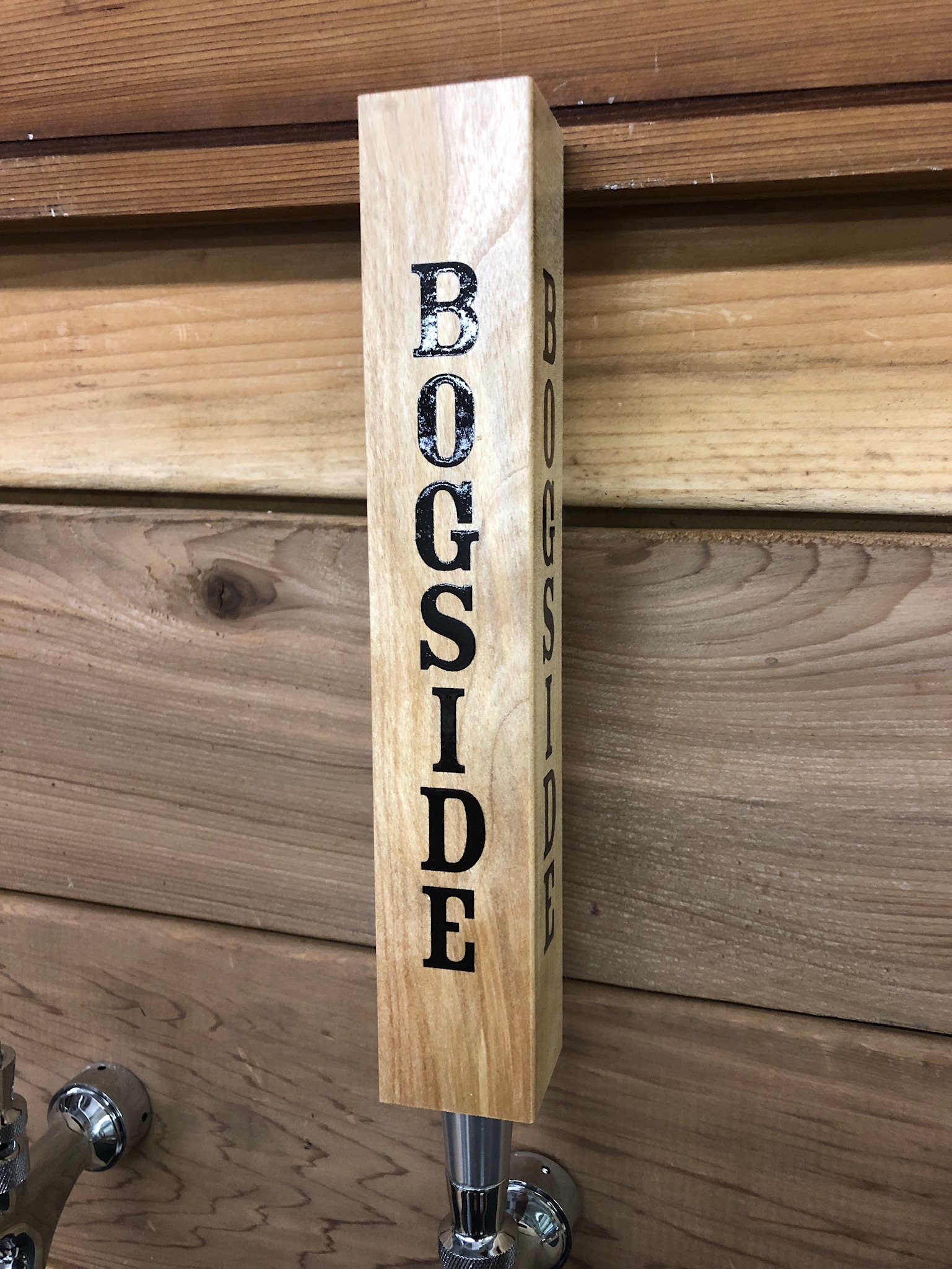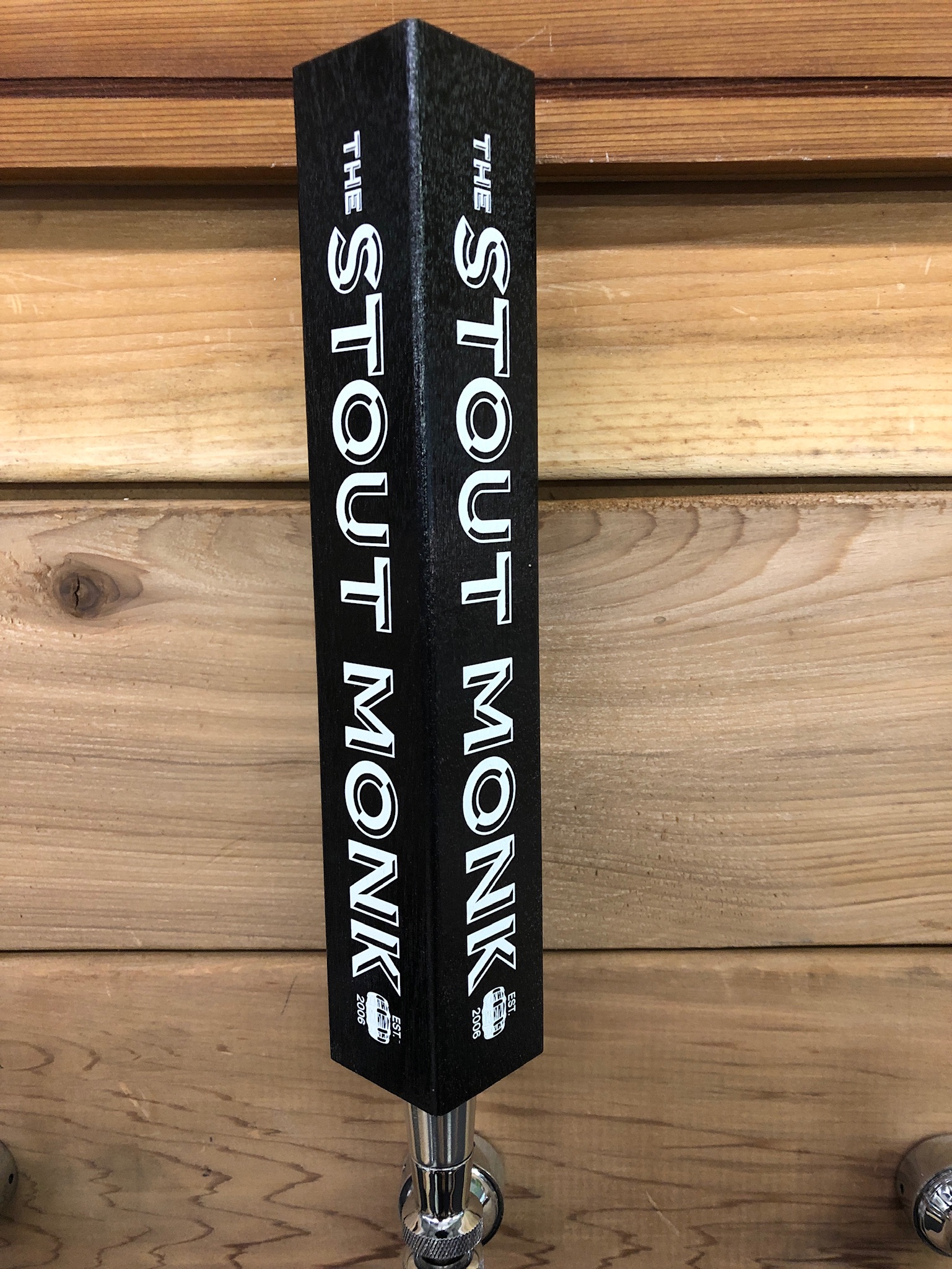 Pints in the Square tap handle is made of wood with an aluminu...
